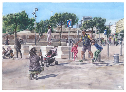 Tout cela capturé à l'aquarelle, avec des textures, les taches, les aspérités, les imperfections qui en sont au final la personnalité d'un instant, d'un lieu, d'un tout.